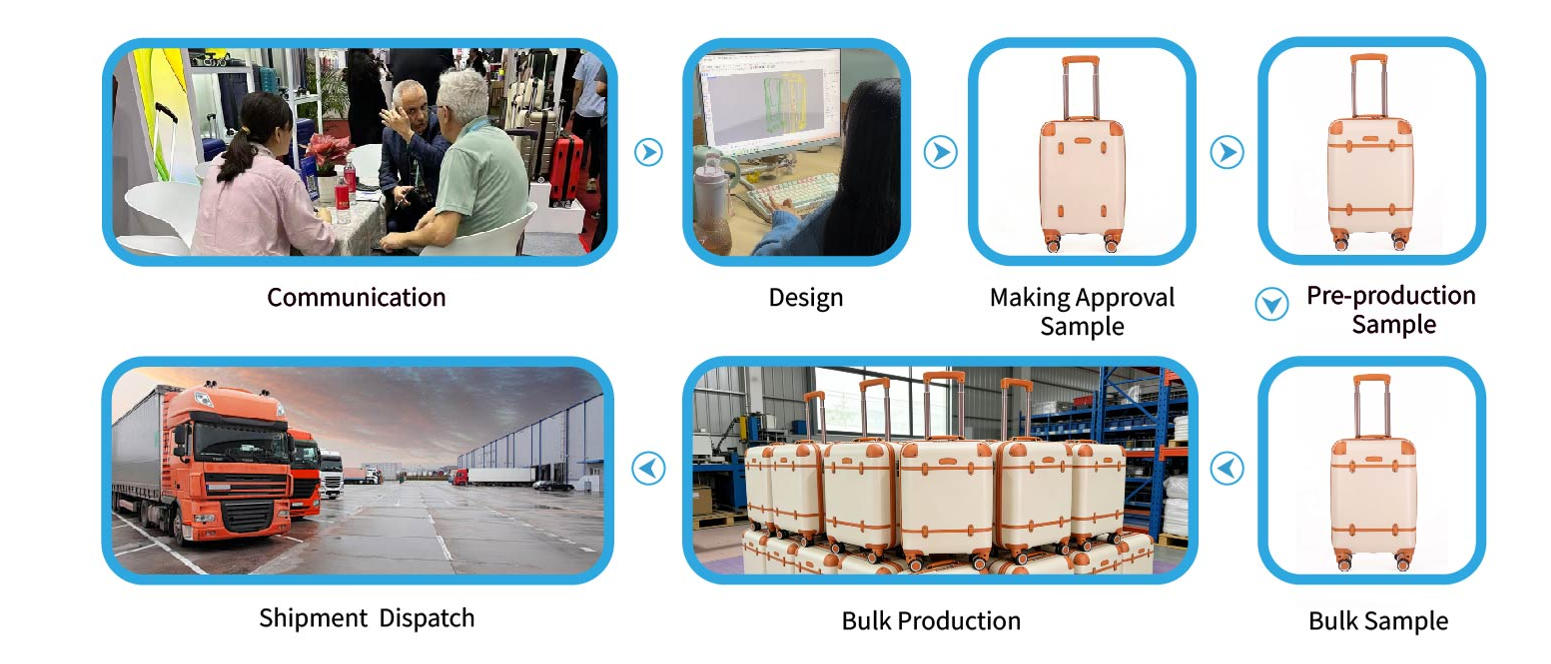 In qualità di produttore professionale di valigie personalizzate con oltre 40 anni di esperienza nella produzione e nelle vendite a livello globale, Zabaggo offre soluzioni complete OEM e ODM per valigie a partner B2B in tutto il mondo, tra cui venditori Amazon, rivenditori e proprietari di marchi.