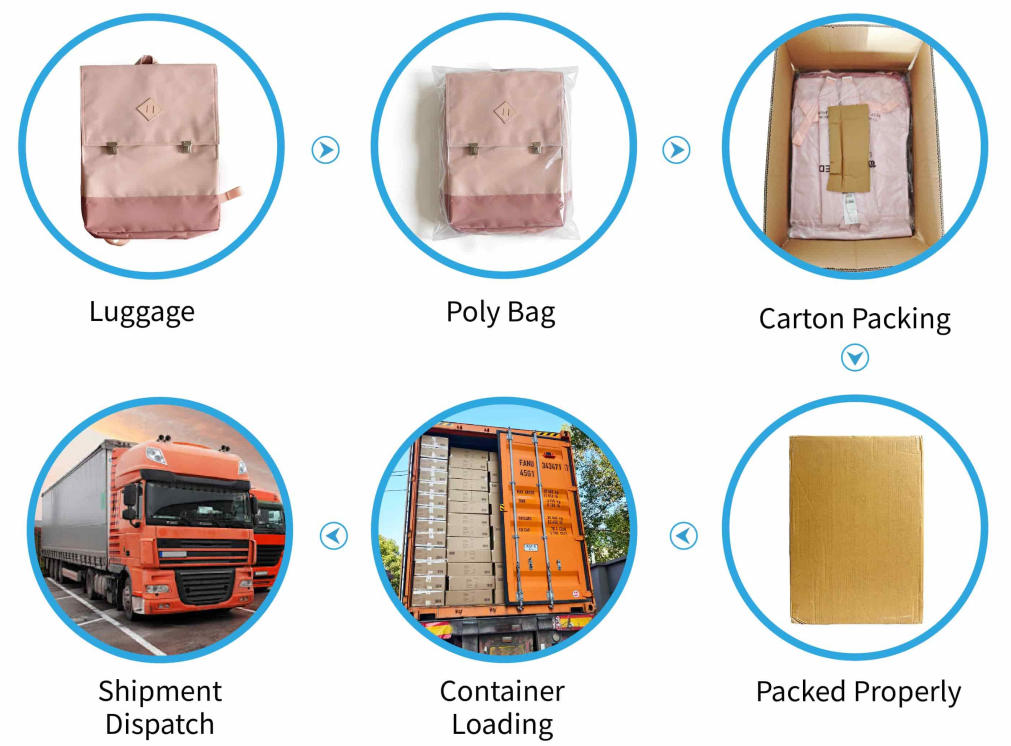 | Materiale | PP, PC, ABS, lega di alluminio, tessuto, pelle PU, ecc. | Nylon, poliestere, tessuto Oxford, pelle sintetica PU, tela, ecc. |